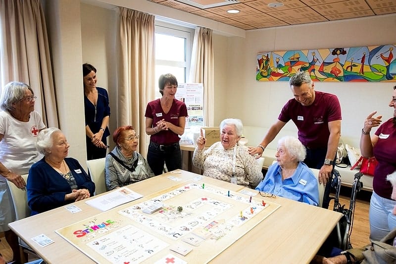 Après la théorie, place à la pratique. Grâce à l’accueil chaleureux du personnel et des résidents de Bellando de Castro et A Qietüdine, les apprentis bénévoles ont pu animer des moments de convivialité autour de ce jeu original au double objectif : favoriser les échanges entre générations et lutter contre l’isolement de personnes dépendantes.
