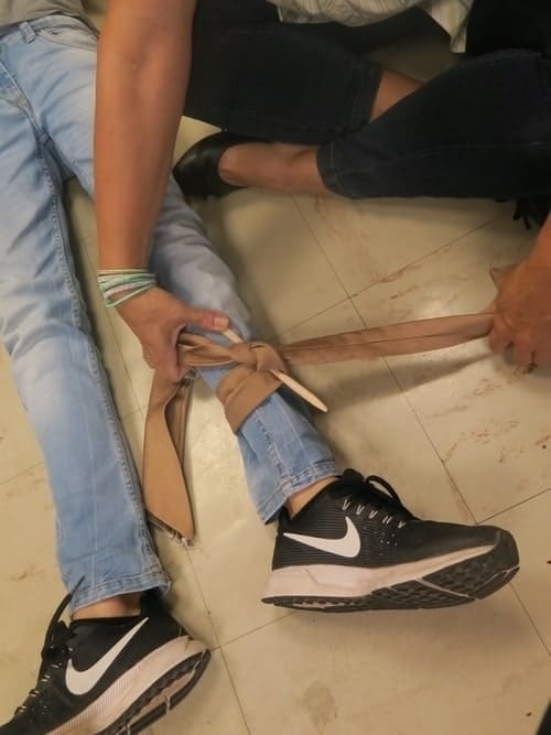 Le jour de notre passage il était question d’arrêter totalement un saignement abondant. « Une action à pratiquer immédiatement » insiste le formateur qui ajoute, qu’il est primordial de savoir mettre en œuvre les gestes essentiels pour faire face à une détresse immédiatement vitale. « Votre action peut sauver une vie ».